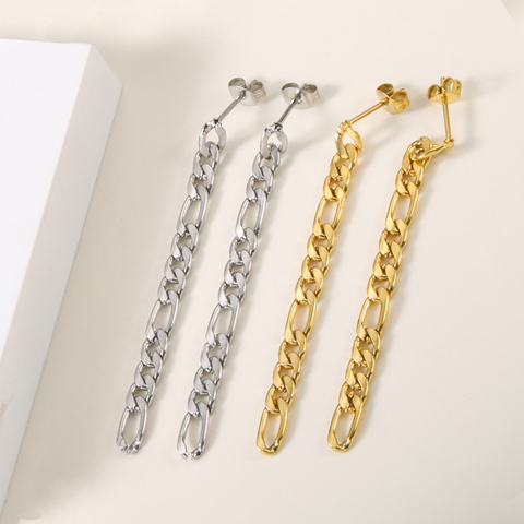 Hip Hop Fashion Stainless Steel Link Chain Dangle Earrings Figaro Cuban Thick Chain Drop Chain Earrings for Women