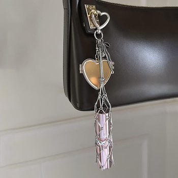 Ruj kadınlar için toptan paslanmaz çelik Net çanta yıldız kalp ayna anahtarlık Net çanta ruj tutucu zincir